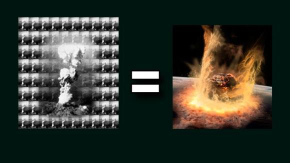 La explosión (poder destructivo) del meteorito que cayo sobre los Urales, equivalente a 30 bombas de Hiroshima
