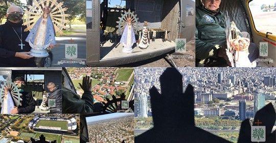 Las imágenes de la Virgen de Luján y de la Virgen de Loreto sobrevuelan el cielo de Buenos Aires
