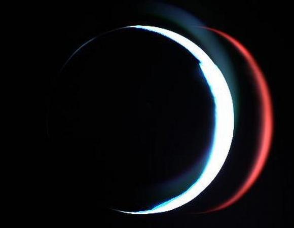 Estamos acostumbrados a ver a la Luna en cuarto creciente, pero resulta inusual ver al Planeta Rojo reducido a un estrecho gajo iluminado. Esta imagen fue tomada por la sonda Rosetta de la Agencia Espacial Europea (ESA)...