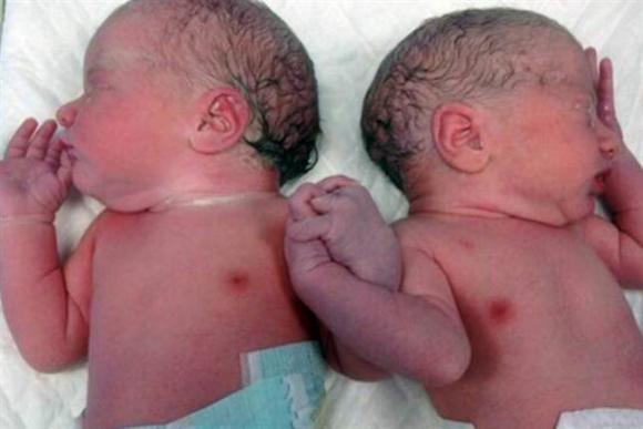 Emotiva foto de mellizos tomados de la mano al nacer
