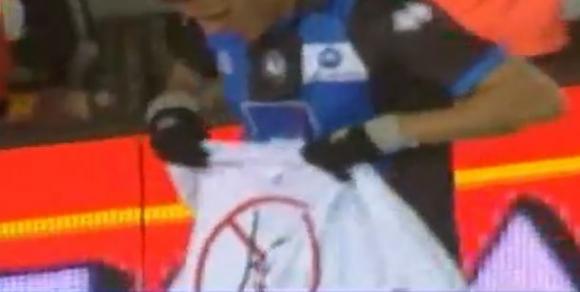 Se trata de Germán Denis, quien luego de marcar el 2 a 1 para su equipo tomó una remera blanca pintada con una letra K tachada. ¿Más política en el fútbol?