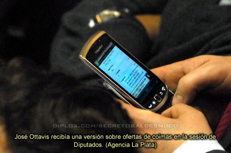 publicada hoy por diario Clarín— donde se ve el teléfono celular del vicepresidente de la Cámara de Diputados bonaerense e integrante de la agrupación La Cámpora, José Ottavis, enviando y recibiendo mensajes en medio de la sesión por la polémica reforma tributaria. “