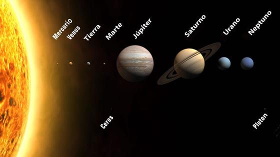 Podemos apreciar a los 8 planetas ¨oficiales¨ de nuestro Sistema Solar, y dos planetas enanos, Plutón y Ceres. Plutón se encuentra más allá de Neptuno, y Ceres en el cinturón de asteroides. Los sumerios contaban a Nibiru como un planeta más del Sistema Solar.