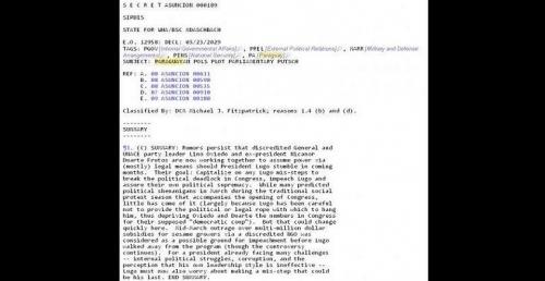 ¨Corren rumores de que el líder del Unace, el general Lino Oviedo, junto al expresidente Nicanor Duarte Frutos buscarían destituir a Fernando Lugo, con un juicio político dentro del Parlamento¨, según se desprende del documento.