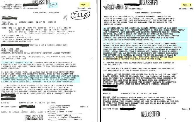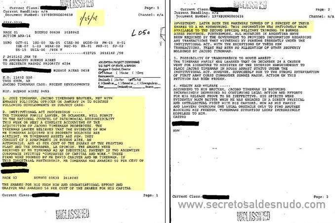 (1) Informe de José Timerman, hermano de Jacobo y tío de Héctor, en marzo de 1978 ante el oficial de la CIA destacado en la embajada de USA en Buenos Aires.