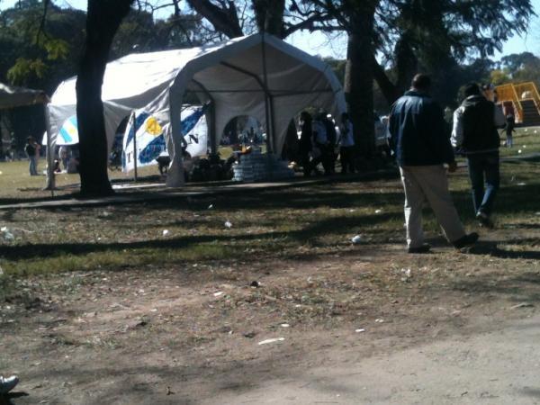 La Campora montó una carpa en Av. B. Araoz y desde allí reparte agua y comida a los militantes q están en el Hipódromo.