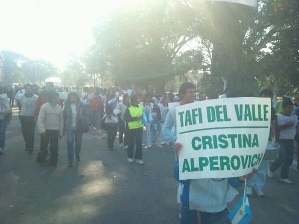 Solo gente de La Campora puede ingresar con palos o cañas en sus carteles. La gente de Tafí del Valle no pudo.