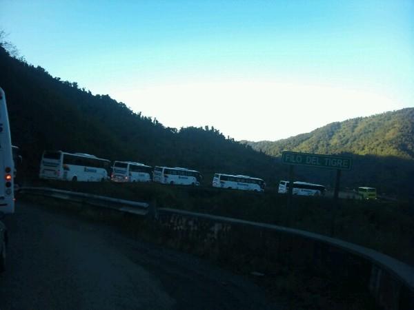 Varios periodistas tucumanos lograron captar (y publicar) a través de su cuentas de Twitter, el impresionante movimiento de militantes en colectivos de línea que suspendieron sus recorridos habituales para poder trasladar a cientos de concurrentes.