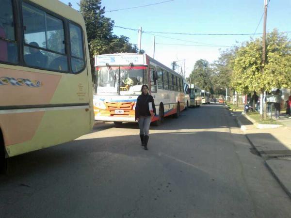 Unos 15 a 20 colectivos esperan frente a la mun. de yerba buena trasladar gente al acto del hipódromo.