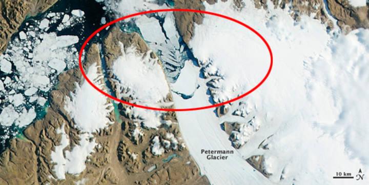 Estos desprendimientos son habituales en esta época, pero la magnitud de los cambios que está sufriendo el glaciar Petermann ha llamado la atención de los científicos.