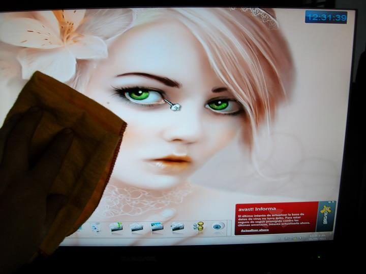 Tené cuidado de no dejar que el liquido caiga por los costados del monitor.