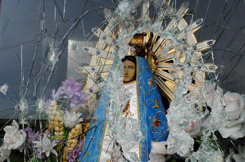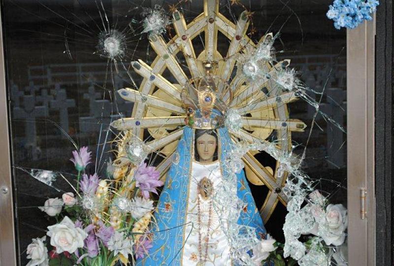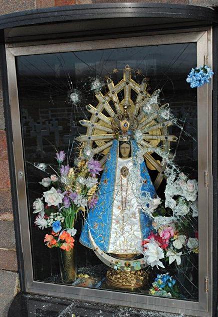 ¨Hay fuertes impactos en un blindex de vidrio que protegía la urna donde está la imagen de la Virgen. Parecen balas pero aún no sabemos¨, contó a este diario Cesar González Trejo, apoderado de la comisión y ex combatiente de Malvinas. ¨No se dañó la imagen pero podrían haberlo hecho¨, expresó.