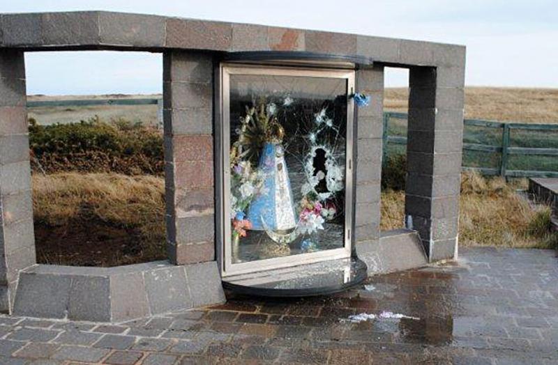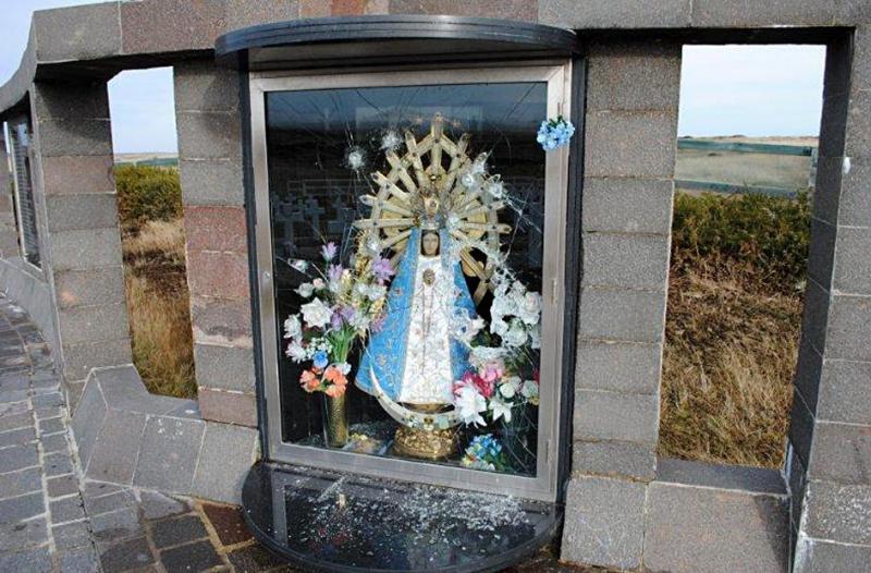 Familiares de los soldados caídos en la guerra señalaron a LA NACION que se atacó la imagen de la Virgen de Luján; las autoridades de las islas pidieron que ¨cualquiera que tenga datos contacte a la policía¨