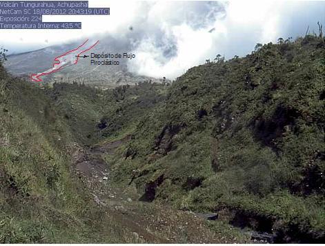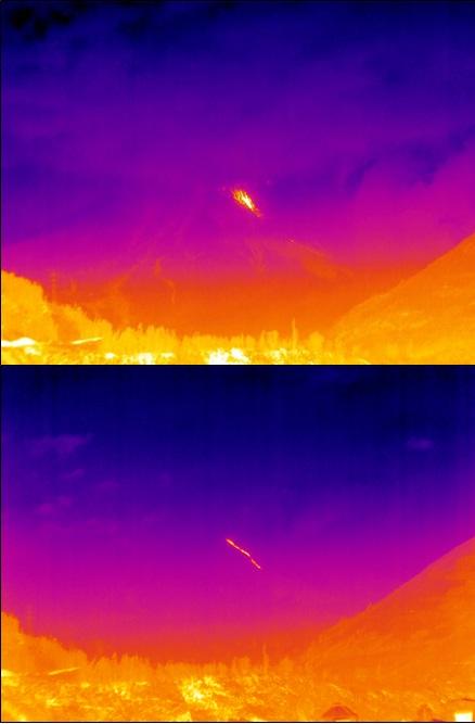 Con la ayuda de una cámara térmica de visión nocturna geólogos observaron y fotografiaron la noche de ayer el descenso de lava desde el Volcán Tungurahua, Ecuador, informó en la madrugada el Instituto Nacional de Sismología y Vulcanología del país.