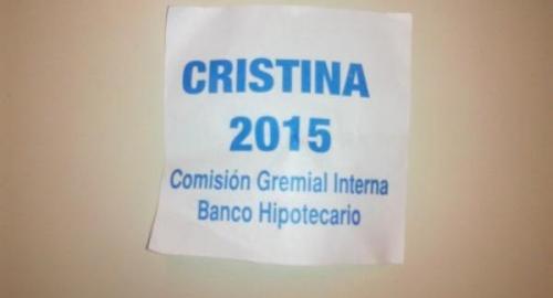 El pedido no fue por parte de la agrupación creada por Máximo Kirchner, sino por la Comisión Gremial Interna Banco Hipotecario. Fue así que, tres años antes de las próximas elecciones presidenciales, el gremio del Hipotecario ya pide por “Cristina 2015”.
