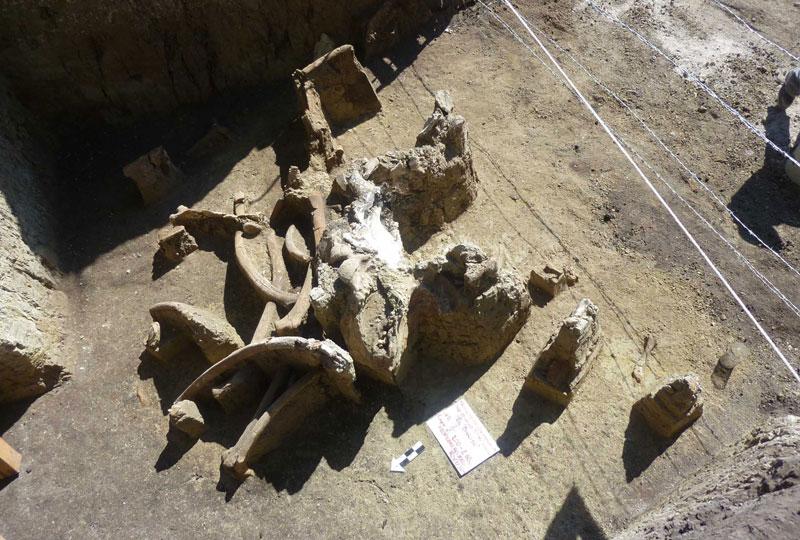 Del mamut se encontraron costillas, vértebras, huesos largos de las extremidades, una parte del cráneo y el maxilar sin muelas, en tanto que las defensas (colmillos) se habían astillado y sólo se pudo verificar la huella de éstas que quedó marcada en la tierra.