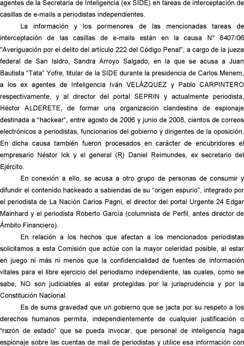 Ver: https://www.diplox.com.ar/secretosaldesnudo%7C16456-la-organizacion-de-inteligencia-del-gobierno-para-destruir-presionar-y-extorsionar-a-politicos-periodistas-jueces-y-fiscales.html ) sumado a la Denuncia en la Comisión Bicameral de Seguimiento y control de los Servicios de Inteligencia.
