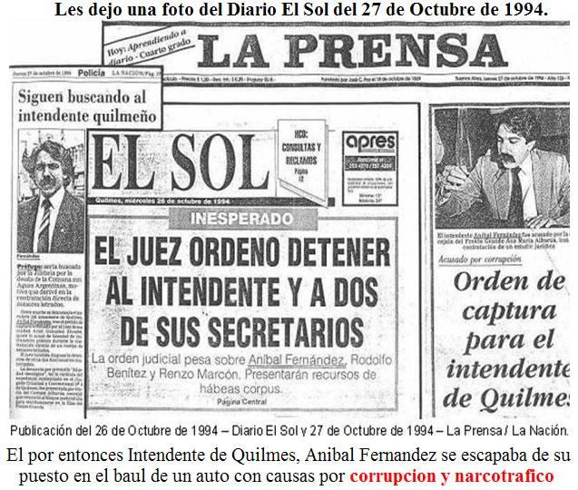En ese entonces, diario La Nación —del 27 de octubre de 1994— titulaba: ¨Siguen buscando al intendente quilmeño¨, y La Prensa del mismo día decía: ¨Orden de captura para el intendente de Quilmes¨.