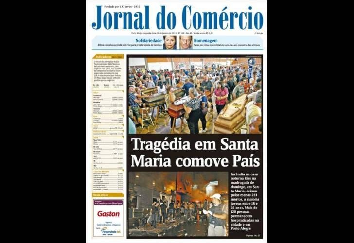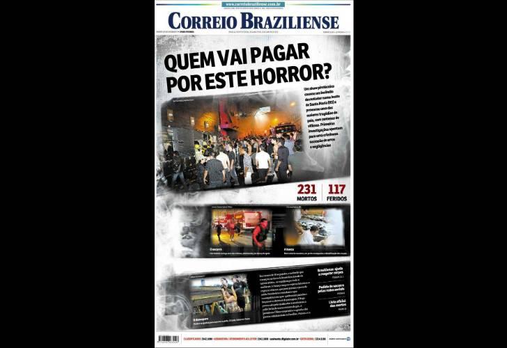 Los medios de Brasil reflejaron esta mañana en sus portadas la tragedia del boliche en donde murieron al menos 233 personas, durante el incendio generado por el uso de pirotecnia. La discoteca se convirtió en una trampa mortal, ya que carecía de salida de emergencia y de autorización municipal para funcionar.