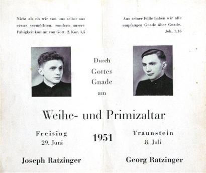 Sus antepasados eran agricultores de la baja Baviera. Joseph, el tercero de los hermanos Ratzinger, nació un sábado santo y fue bautizado al día siguiente, domingo de Pascua, con el agua recién bendecida durante la Vigilia. Una coincidencia que se quedó grabada en su alma.