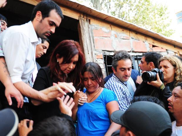 Ayer, Cristina Fernández también tuvo que escuchar los reclamos de los vecinos y cánticos en su contra, cuando fue a recorrer Tolosa, el barrio más afectado por las inundaciones.