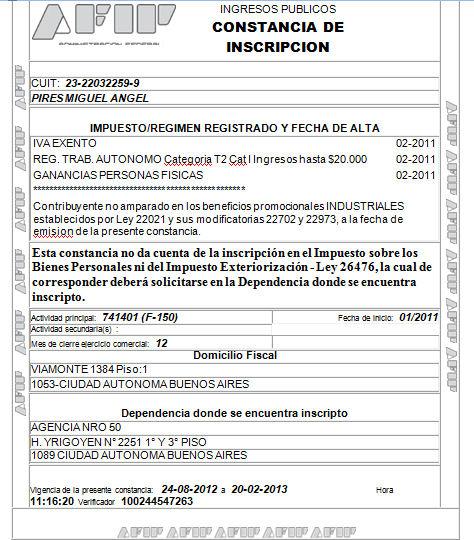 Asimismo su cuentas bancarias son relativas, pero si es interesante su calidad de Cuasi Monotributista ante la AFIP.