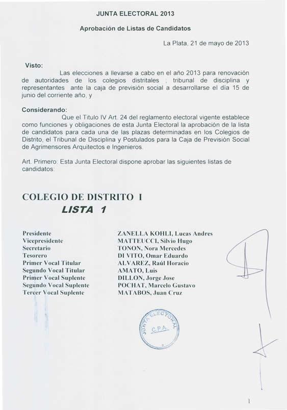 JUNTA ELECTORAL 2013 - (Listas aprobadas)