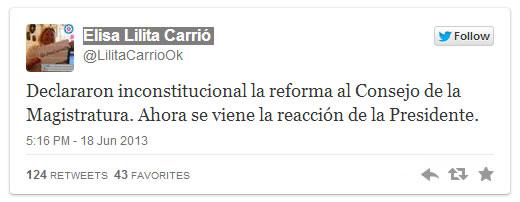 Una hora antes de conocerse el fallo de la Corte Suprema sobre la reforma del Consejo de la Magistratura, la presidenta Cristina Fernández de Kirchner apuntó contra el Poder Judicial con una catarata de mensajes en su cuenta oficial de Twitter.