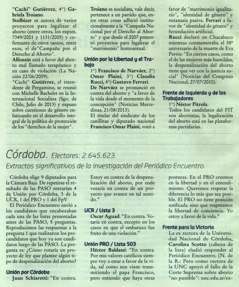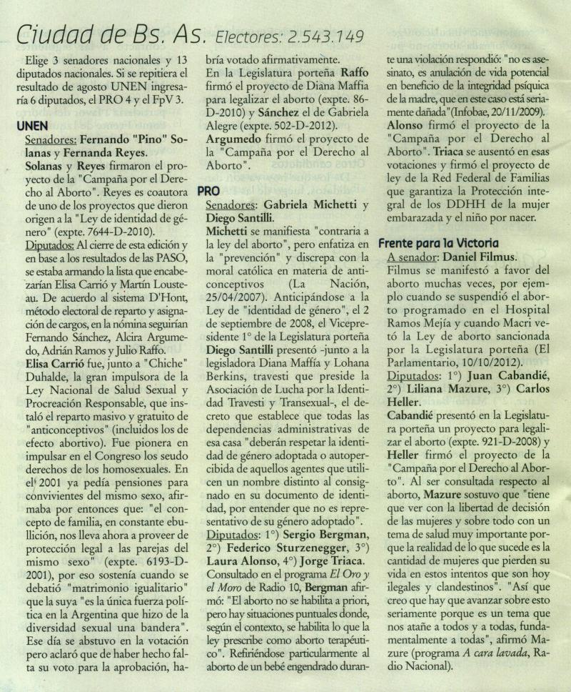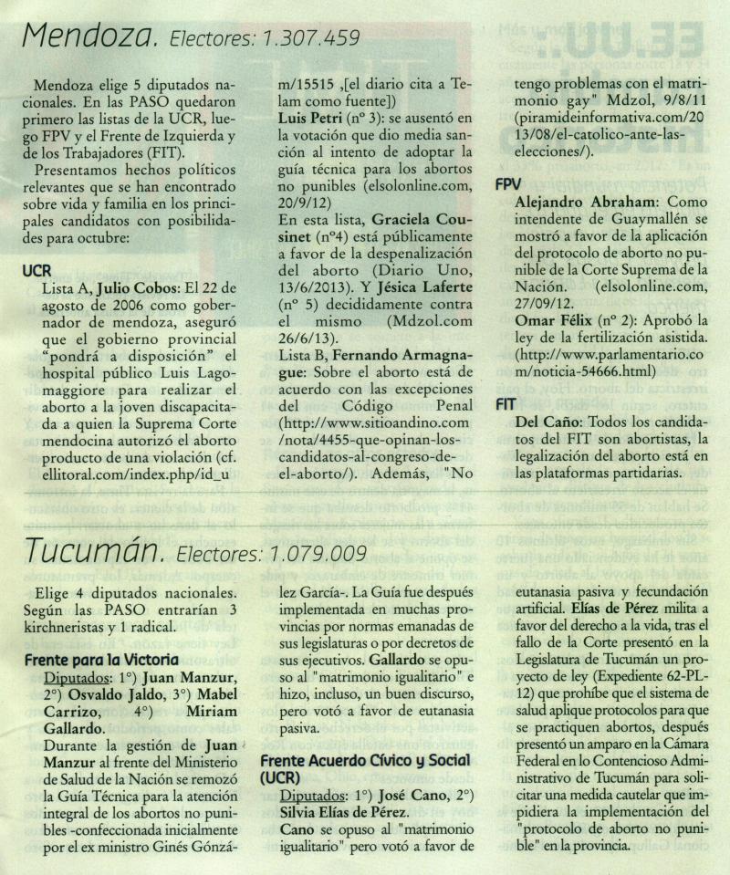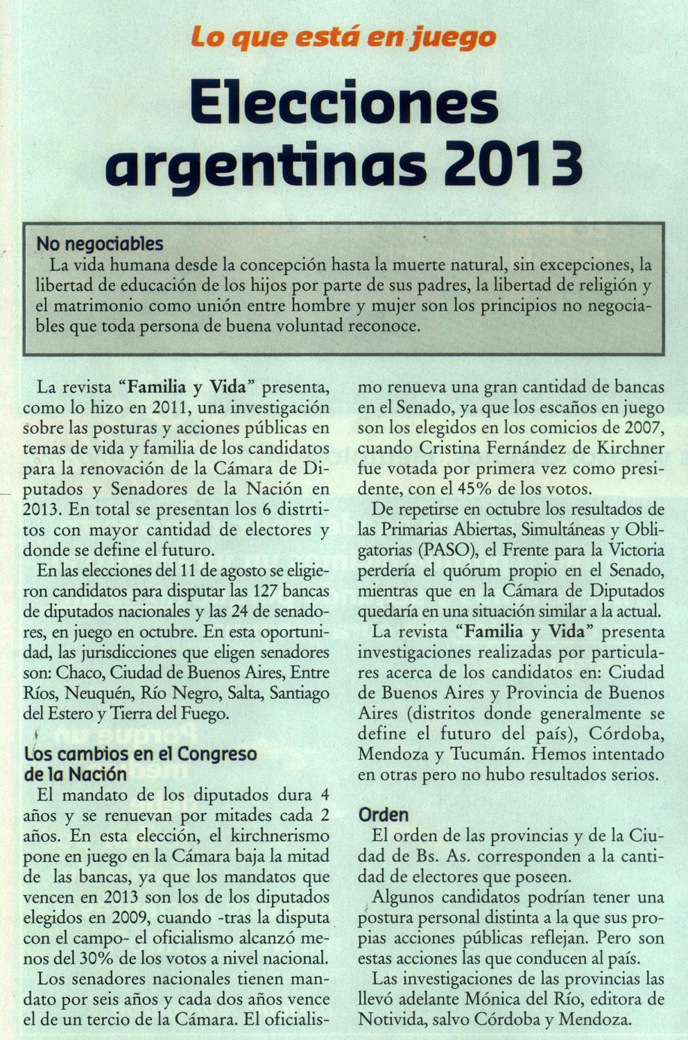INVESTIGACIÓN SOBRE POSTURAS Y ACCIONES PÚBLICAS EN TEMAS DE VIDA Y FAMILIA DE LOS CANDIDATOS PARA LA RENOVACIÓN DE LA CÁMARA DE DIPUTADOS Y SENADORES DE LA NACIÓN EN 2013.
