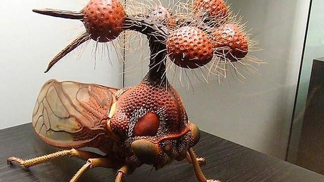 Bocydium globulare es el nombre de este curioso insecto, pariente de las cigarras. Esta reproducción a gran escala se guarda en el museo de Historia Natural de Berlín. Durante mucho tiempo se pensó que era fruto de la fantasía de su autor, Alfred Keller (1902-1955). Sin embargo existe y pertenece a una familia de auténticos ¨bichos raros¨ que se pueden encontrar en las copas de los árboles de las selvas brasileñas, aunque hay que buscarlos con atención porque no llegan a un centímetro. Para camuflarse los miembros del género Bocydium han desarrollado increíbles adaptaciones, que imitan cuernos, pelo... El resultado es realmente curioso.