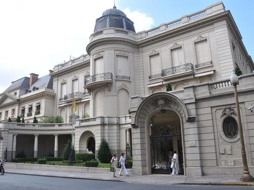 Este palacio ocupa más de 5000 m2 (1800 m2 de construcción y el resto jardines), fue construido en 1909 para la familia Fernández de Anchorena y allí vivió Marcelo Torcuato de Alvear durante parte de su presidencia. Luego fue comprado por Adelia María Harilaos de Olmos quien la donó en 1949 para la residencia del nuncio apostólico en la Argentina. En el frente se luce el escudo papal y allí se alojó en 1934 el cardenal Eugenio Pacelli (quien luego sería el papa Pío XII)………………..