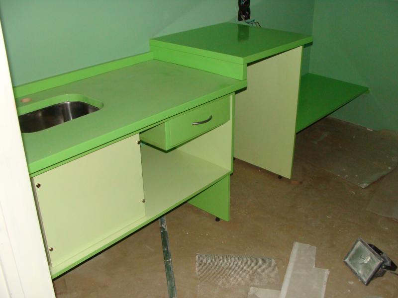 Mueble de cocina, con mesada y bajo mesada, con acabado de pintura hidrorepelente.
