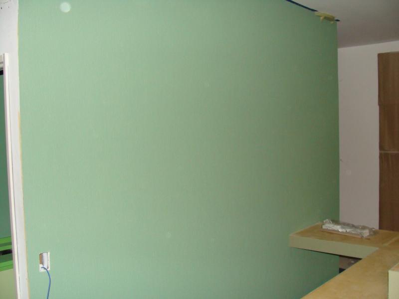 Revestimiento Acrílico (¨Tarquini¨)color verde, textura mediana, colocado sobre muro divisorio de ¨Durlock¨.