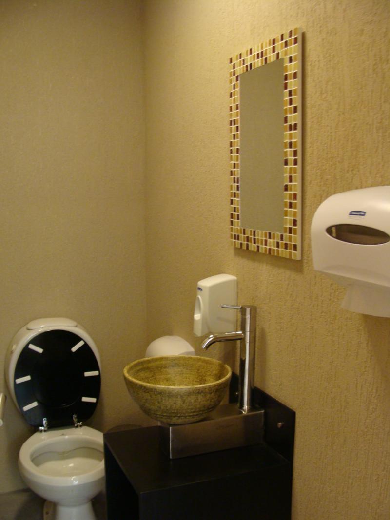Revestimiento Acrílico (¨Tarquini¨)color beige, textura gruesa, aplicado en muros de baño.