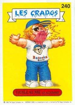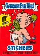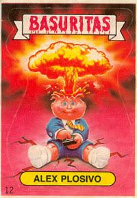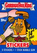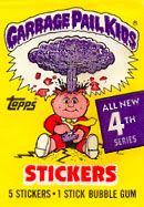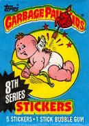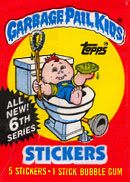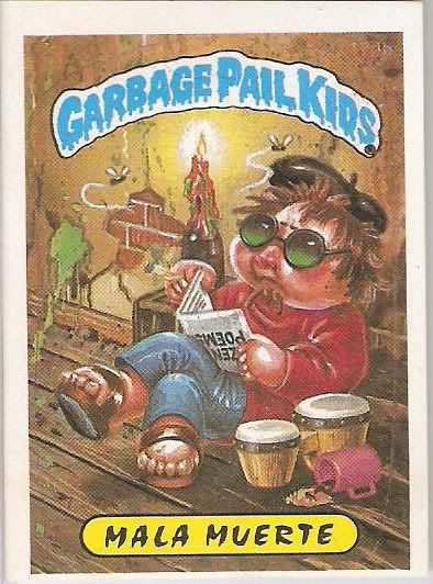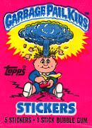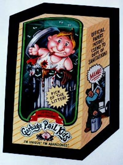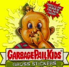 1984: Jon Pound crea una imagen para la colección de tarjetas llamados Wacky Packcages, una colección de stickers que parodiaban productos, esa imagen fué el primer Garbage Pail Kids (arriba). Los editores de Topps le piden a Pound que no la publique ya que tienen idea para una nueva colección basdo en el GPK.