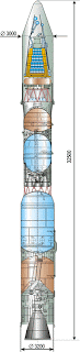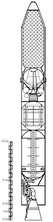 Imagen: Diseño original del cohete Polyot para Vozdushni Start, con una segunda etapa Blok-D de RKK Energía (Novosti Kosmonavtiki).