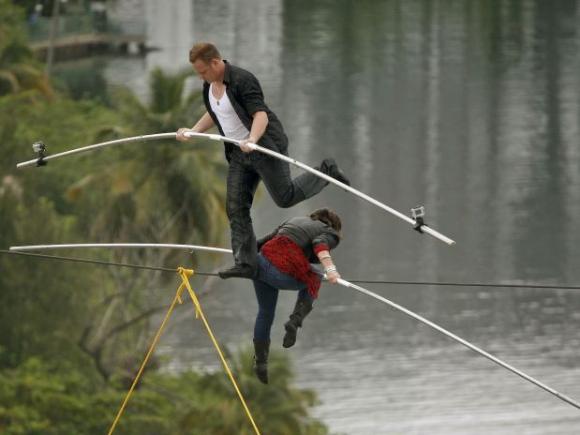 Equilibrista en Puerto Rico recrea proeza que mató a su bisabuelo.