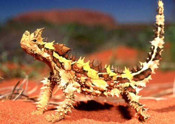 Este pequeño lagarto que habita en el desierto conocido como demonio espinoso (Moloch horridus) jamás se agacha para beber agua, puesto que no tiene necesidad de hacerlo, toma toda el agua que necesita del ambiente...